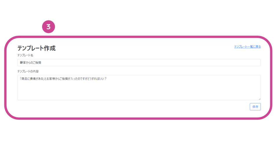 3.テンプレート名とテンプレートの内容を入力し、[保存]を押します。